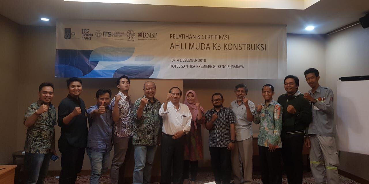 Minggu lalu, tepatnya tanggal 10 hingga 14 Desember kemarin, PT ITS Tekno Sains (PT ITS) berhasil menyelenggarakan Pelatihan & Sertifikasi Ahli Muda K3 Konstruksi (K3K) di Hotel Santika Premiere Gubeng Surabaya. Pelatihan ini merupakan hasil kolaborasi antara PT ITS, Badan Nasional Sertifikasi Profesi (BNSP), dan Lembaga Sertifikasi Profesi ITS (LSP ITS). Pelatihan ini diikuti oleh 7 peserta dari dari 5 perusahaan, yaitu Pelindo III, PT Unilever Tbk, PT Surya Mulia Sampurna, PT Harapan Indah CP, dan PT ITS sendiri. Sedangkan materi pelatihan dibawakan oleh Imam Prayogo, Widjonarko, dan M. Yusuf Zuhdi. Ketiganya merupakan asesor K3 Konstruksi dari LSP ITS.